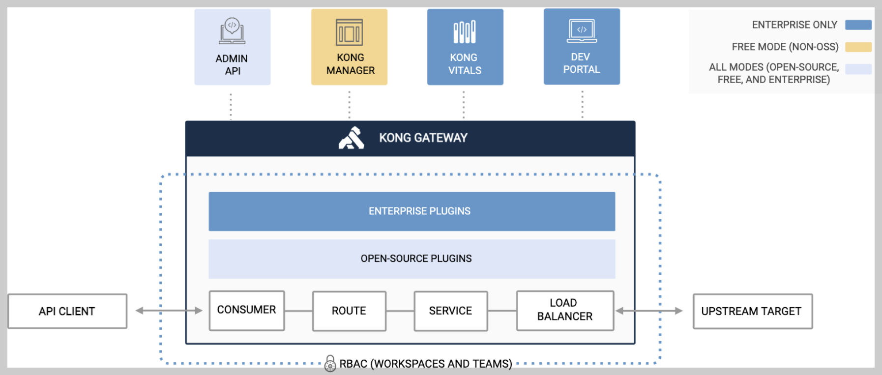 • Kong Gateway용 그래픽 사용자 인터페이스(GUI) 제공 • 내부에서 Kong Admin API를 사용하여 Kong Gateway를 관리하고 제어