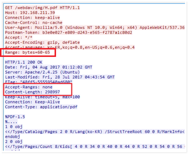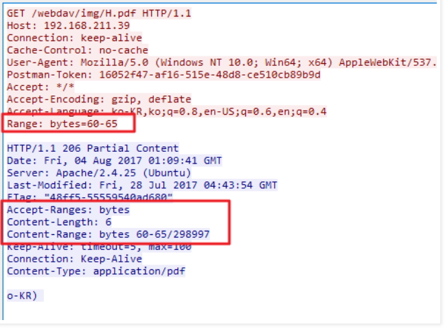 - 웹서버가 클라이언트의 Range 헤더 요청에 대한 응답을 정상적으로 전송