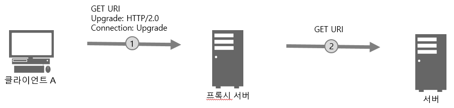 - 아래 그림처럼 프록시 서버를 통해 실제 웹서버로 전달되지 말아야 할 헤더 정보(Upgrade 헤더 정보)를 Connection에 명시하면, 프록시 서버는 명시된 헤더는 실제 웹서버로 전달 X