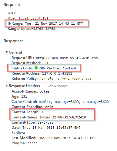 - 웹서버는 If-Range 헤더를 받게 되면, 컨텐츠가 변경되지 않은경우는 Range 헤더의 값에 해당되는 데이터만 전달