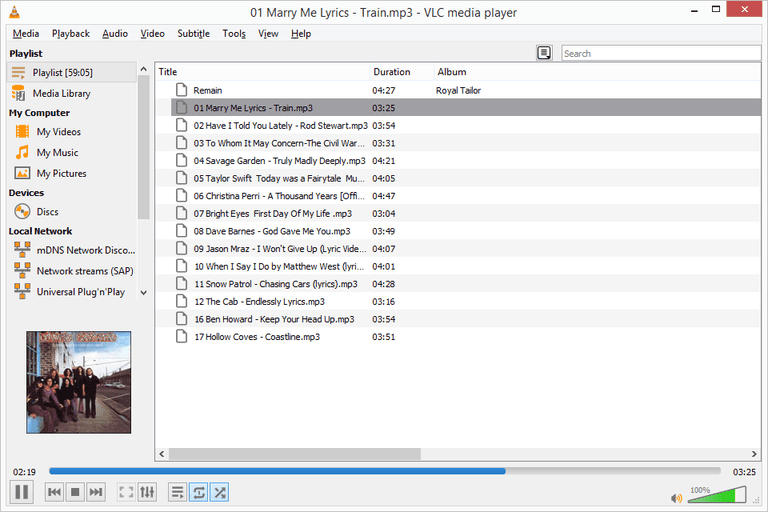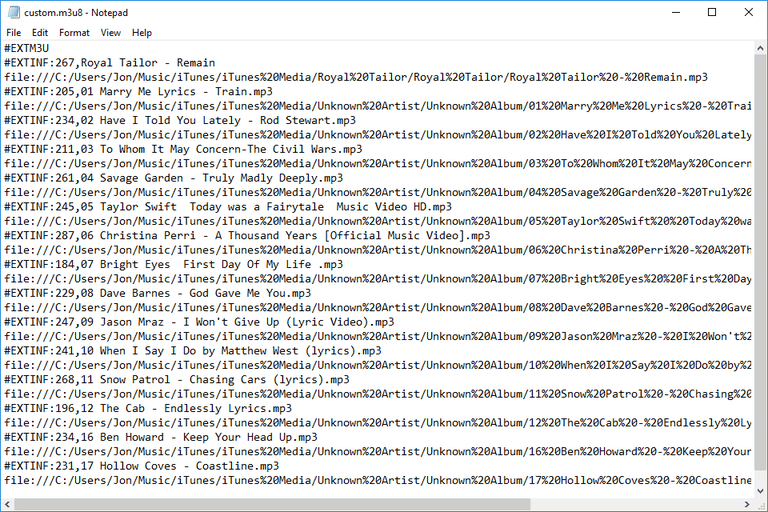 VLC로 열면 텍스트 파일에서 참조 된 모든 음악 파일을 수집하여 재생을 위해 미디어 플레이어에 로드