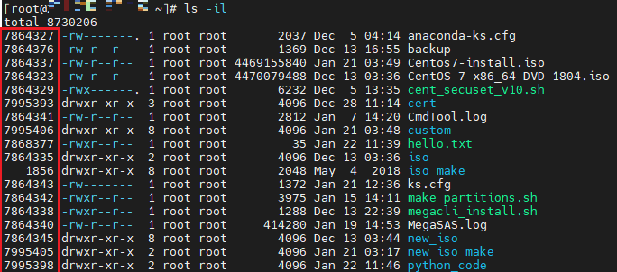 - inode 확인 명령어 ( ls- il )