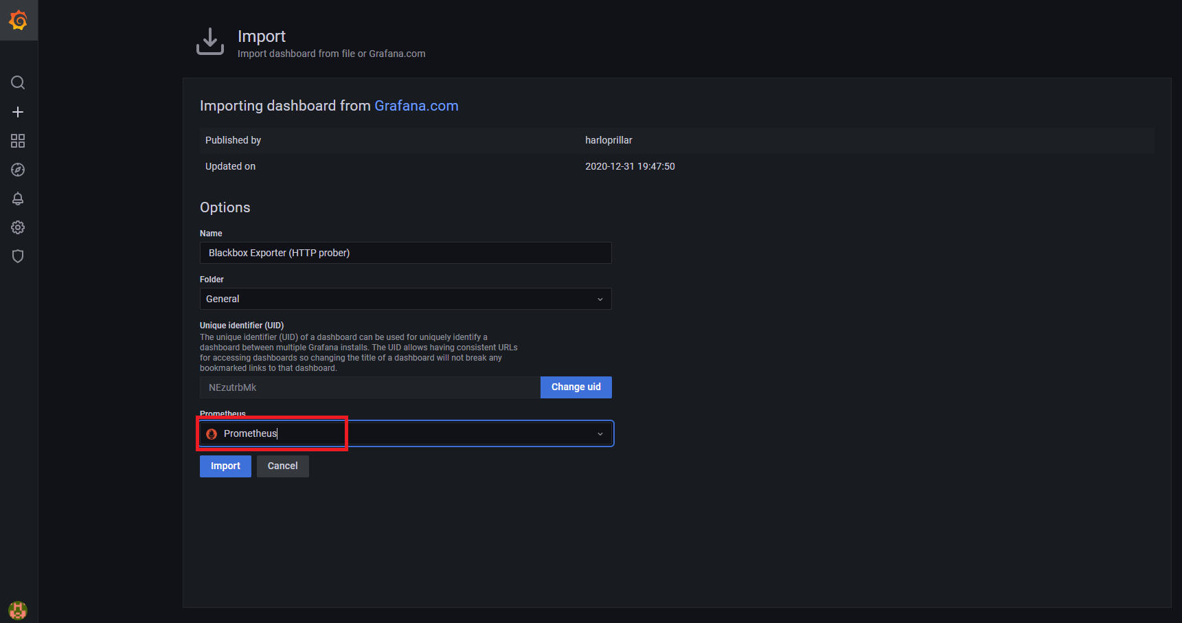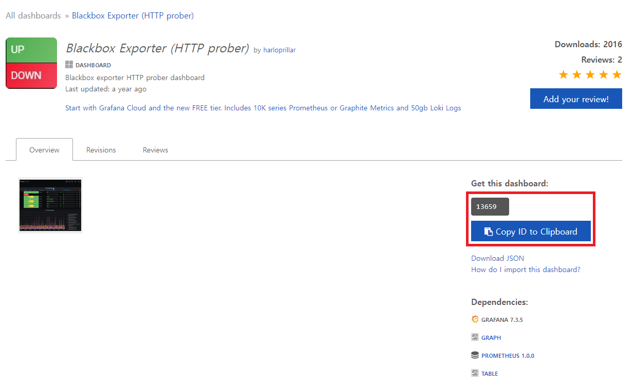 1. blackb-exporter 그라파다 대시보드 복사 가능한 대시보드 ID 획득