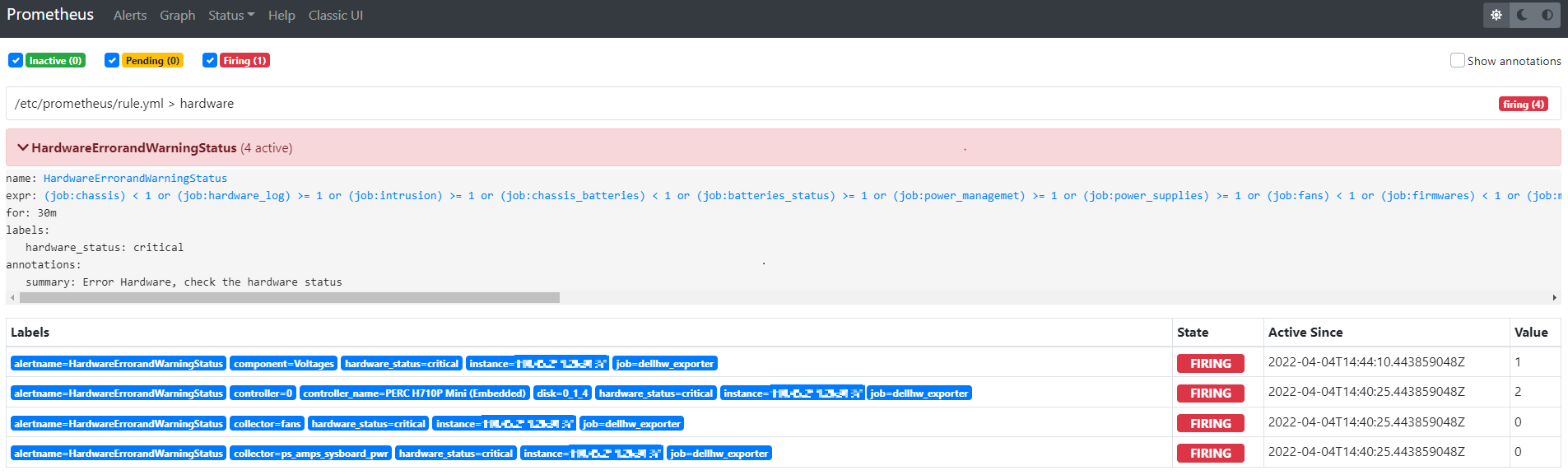 1. DELL 서버 hardware 알람 rule의 yaml 파일 내용