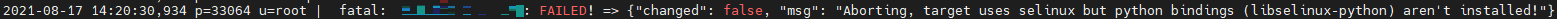 get_url 모듈을 사용하였을 때 문제가 발생하는 문구 → Aborting, target uses selinux but python bindings (libselinux-python) aren't installed!"
