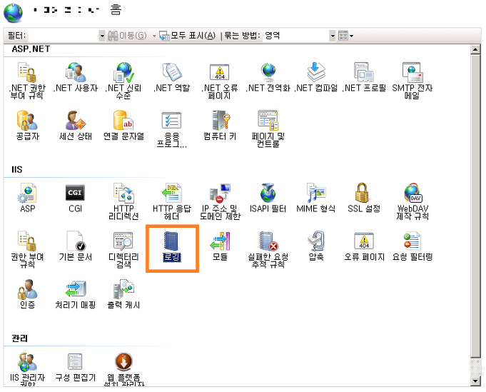 2. 해당 사이트의 홈이 나오면 IIS 메뉴 아이콘 중에 [로깅] 아이콘을 마우스 더블 클릭