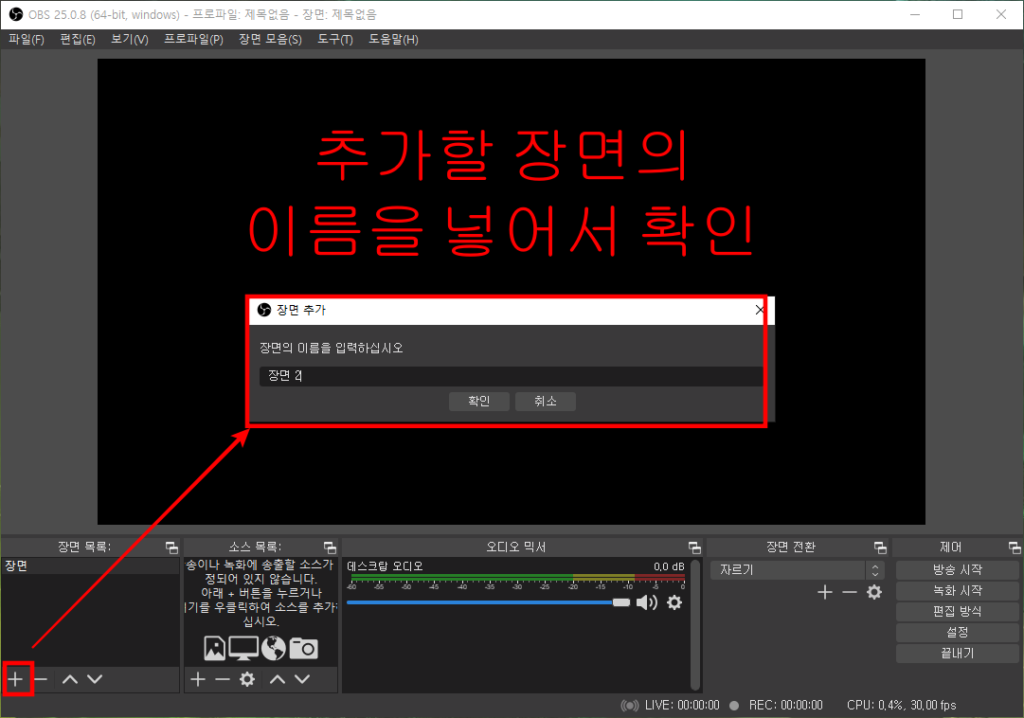 4. OBS Studio 사용법 : 장면 및 소스 설정