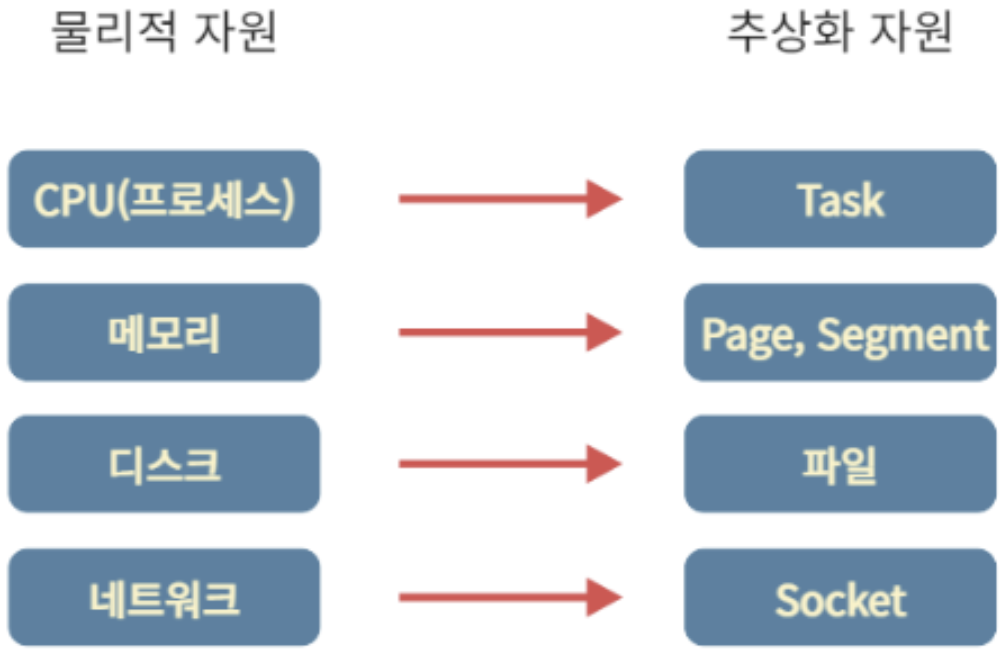• 물리적 자원을 추상화하여 쉽게 접근할 수 있도록 도와주는 것