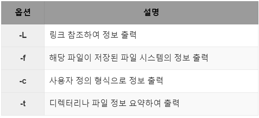 - 파일이나 파일 시스템의 상태 정보 출력 명령어