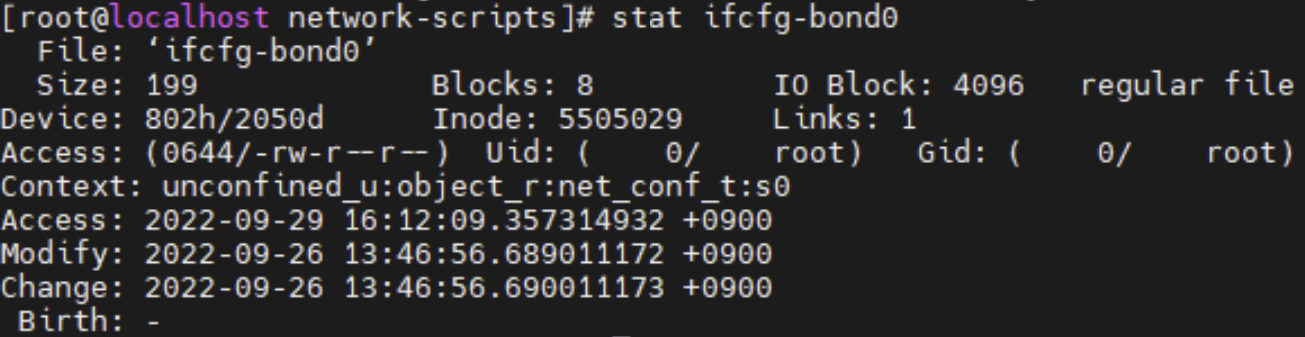- vi로 파일 수정한 경우 atime, mtime, ctime 모두 9.26 → 10.6으로 갱신
