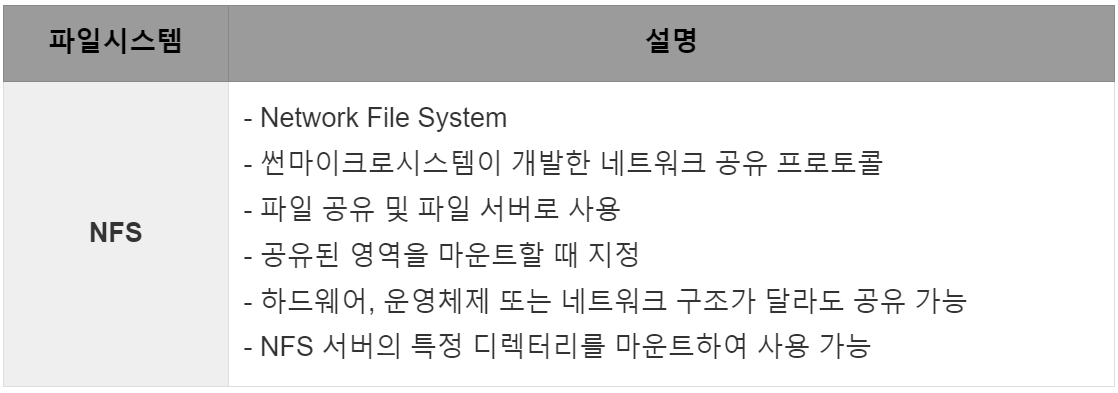 - 파일 서버 상의 자료로의 접근을 제공하는 방식과 가상의 형태로서 접근 수단만이 존재하는 방식도 파일 시스템의 범위에 포함