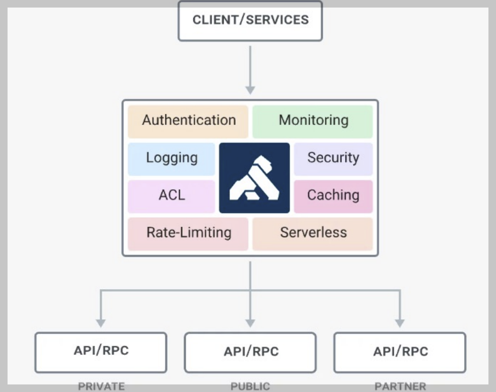 Kong API Gateway는 마이크로서비스(Microservice) 또는 기존 API 트래픽을 쉽게 오케스트레이션(Orchestration)하기 위한 중앙 레이저 역할을 함